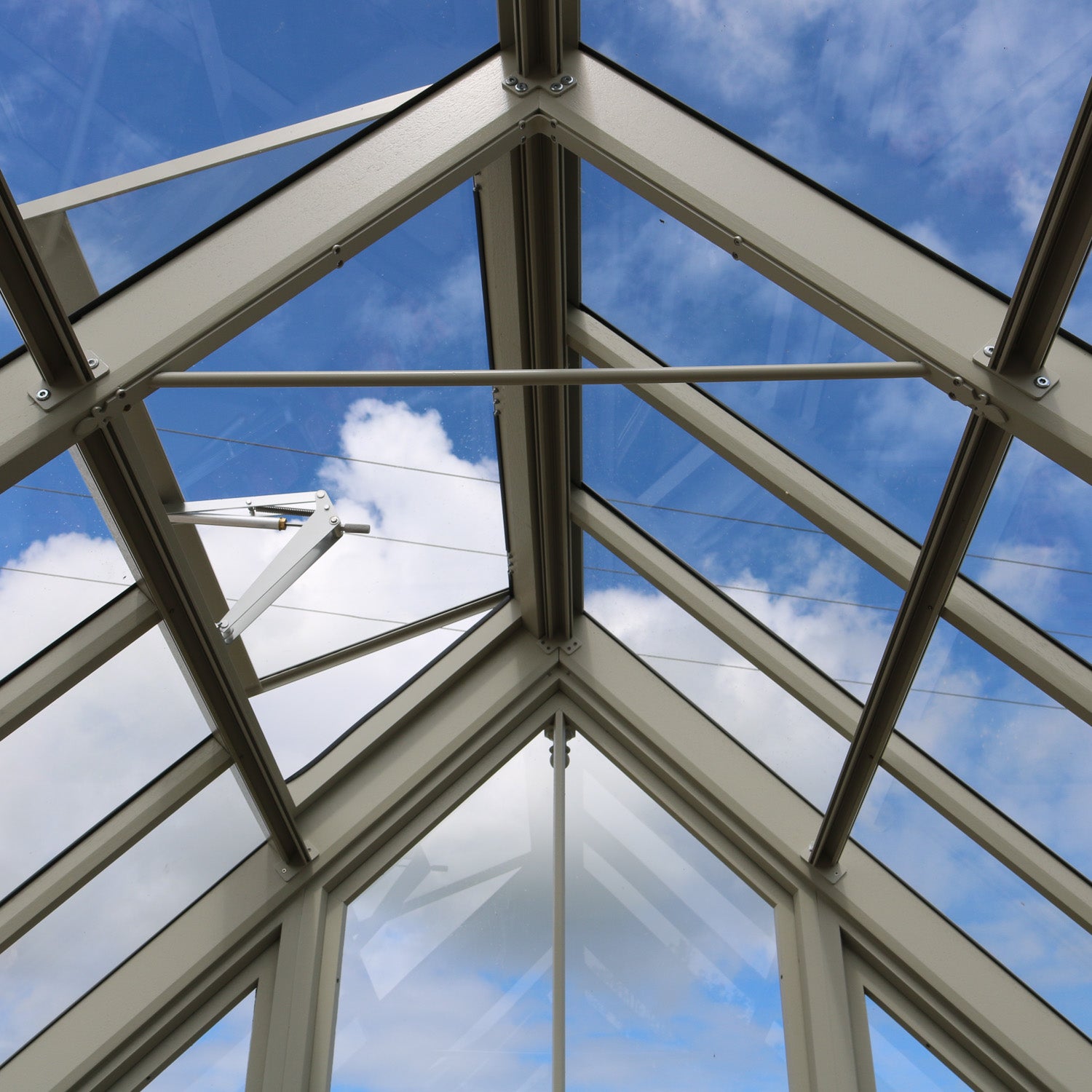 In addition, every Hampton greenhouse includes two thermostatically controlled roof vents as standard, along with four manual side vents or an optional single-lever side opening system, ensuring cross-ventilation is both effective and effortless