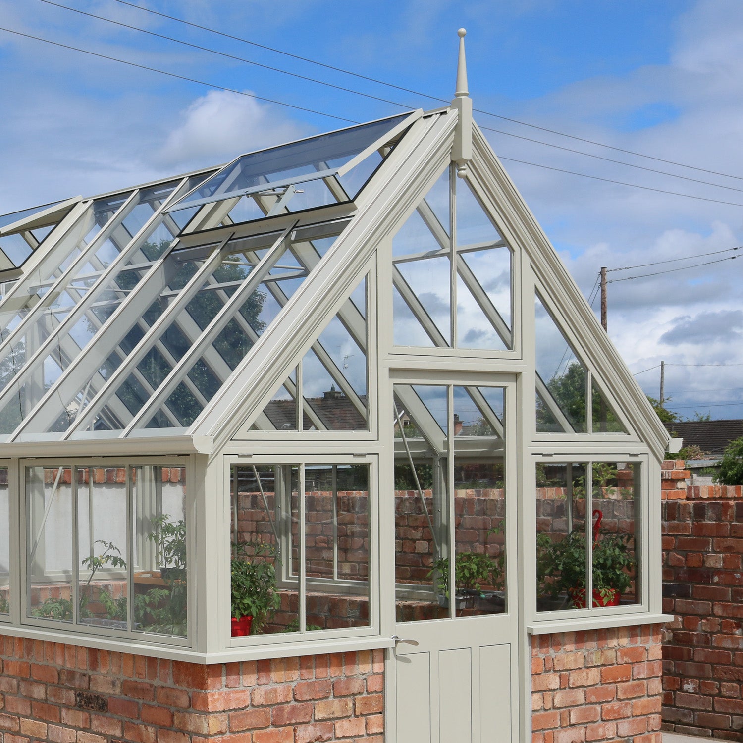Every Hampton greenhouse is crafted from thermally modified, Class 1 hardwood, renowned for its strength, stability, and rich, walnut-like grain. While the timber is tested to last over 25 years untreated, we recommend one of our six heritage paint finishes, each applied using Hampton ToughCoat™ - a two-part, water-based, chemically bonded coating that seals out moisture, blocks UV, and offers exceptional durability.
